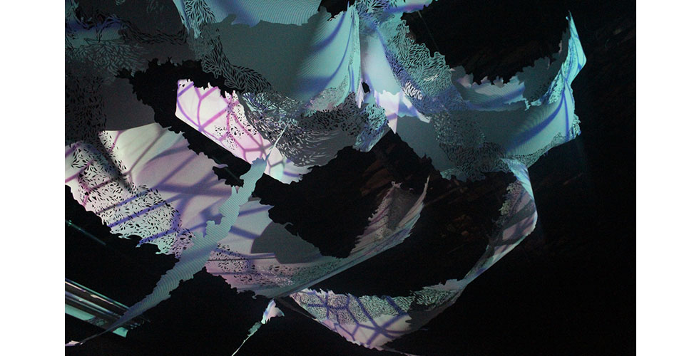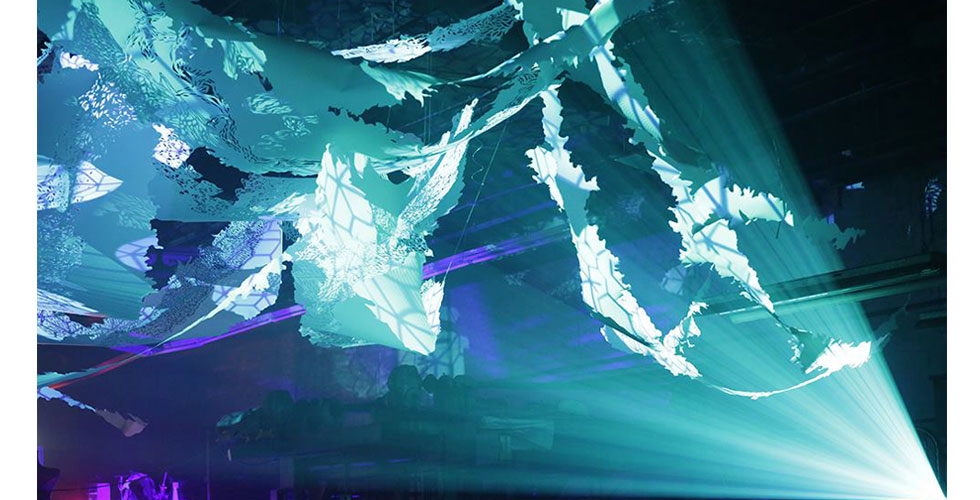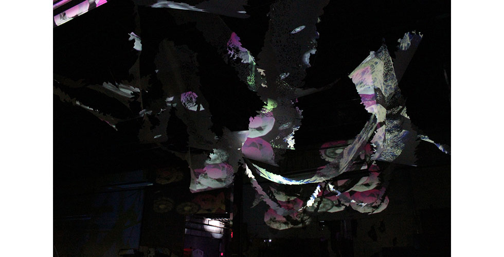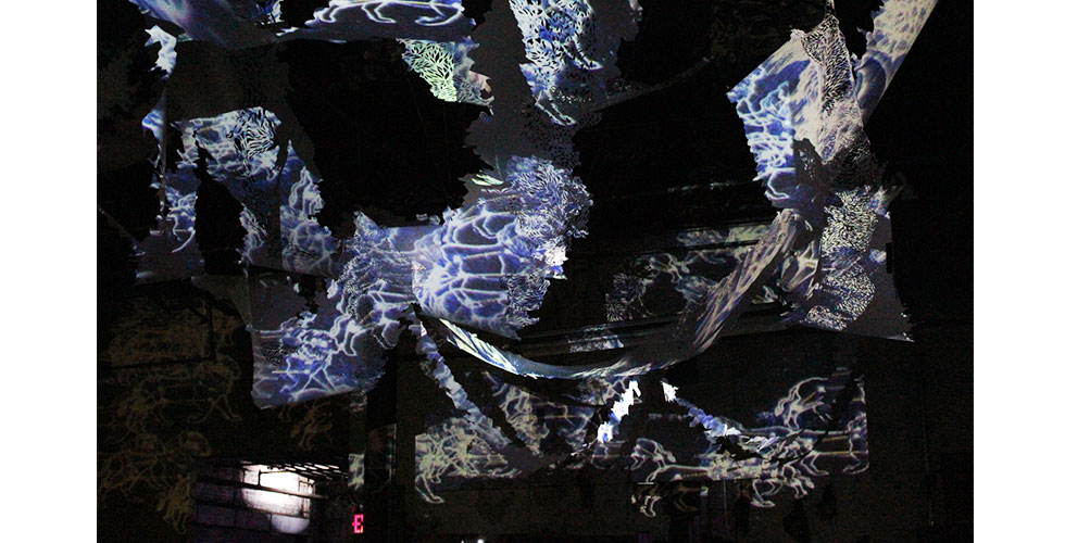 Astroscopic is a site specific light environment / sculpture which was commissioned for Unicorn Meat NYC's annual light based art and music festival, Illuminate. I collaborated with the programming and projection team The Sperm Whale, and hung a hand cut mylar sculpture measuring about 35 feet square, onto which they projected. All light art and effects are custom programmed by The Sperm Whale from scratch, using no software. VIDEO HERE.