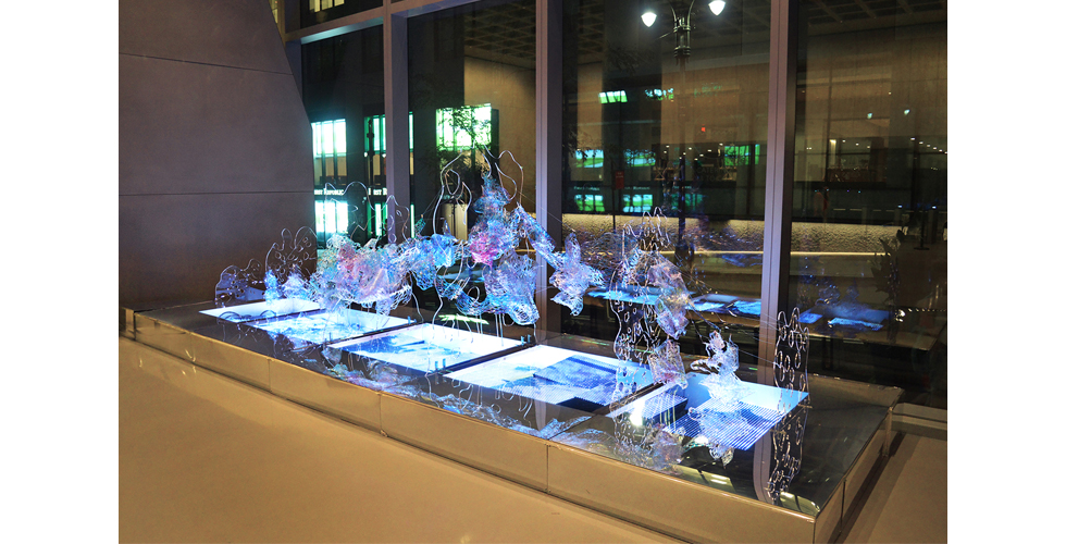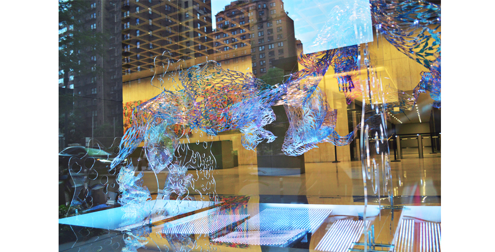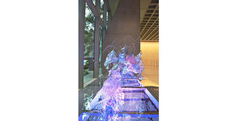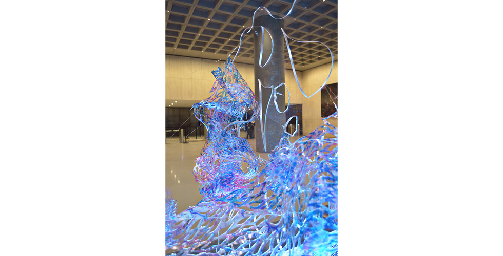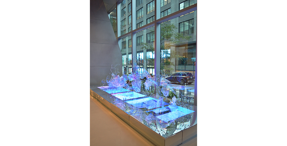 Twenty foot wide public light sculpture, displayed for three months in Fall 2022 at 5 Manhattan West in the Hudson Yards complex of New York City. Lobby of Amazon HQ, Chase Bank and the Mayor's Office of the Comptroller. Commissioned by Arts Brookfield, curated by @wearecga.