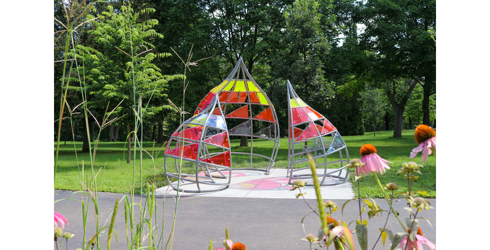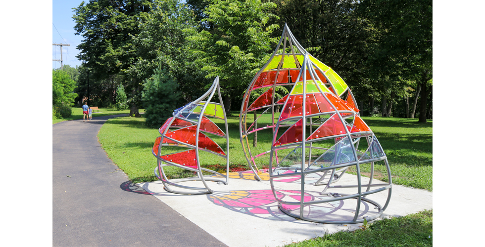 Permanent public sculpture commissioned by Create River Falls, 2023 - 2024. Installed 2024. Tallest of 3 is 9ft tall x 5.5ft base radius.
